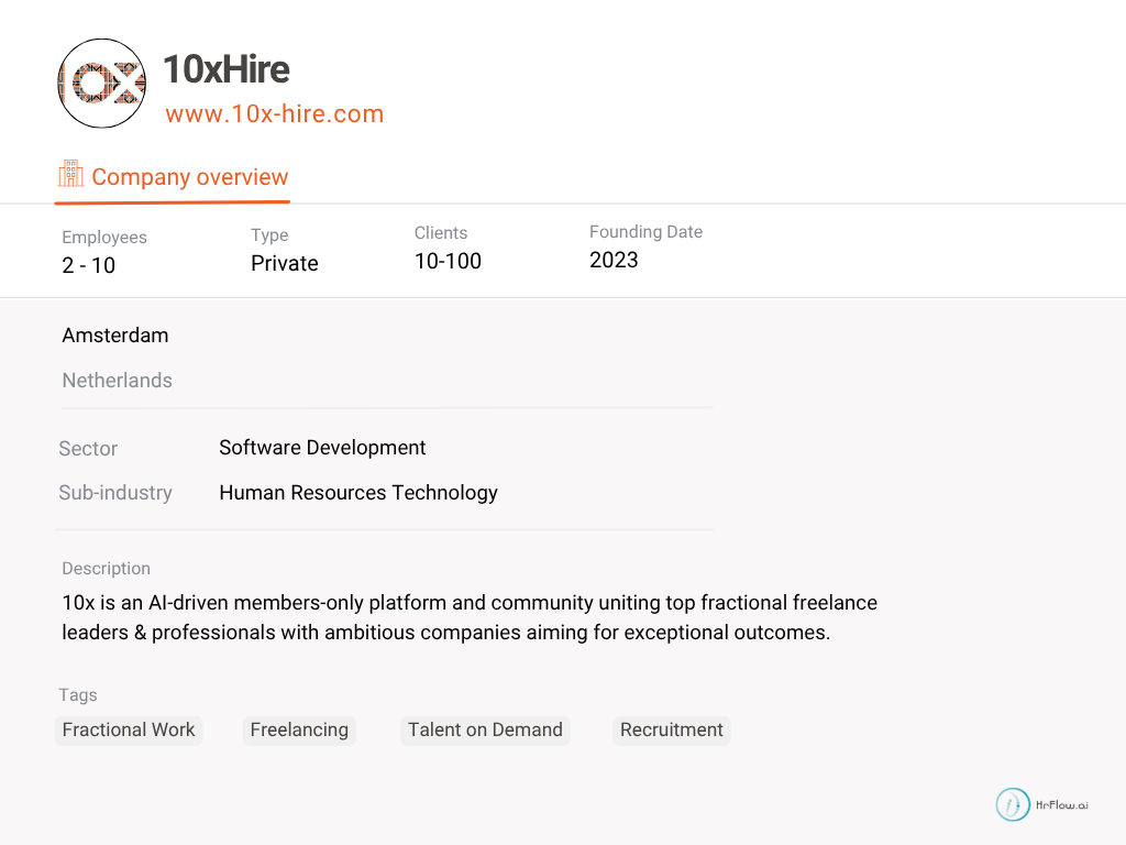 - Founded: 10xHire (ex: 10x.team) was founded in 2023
