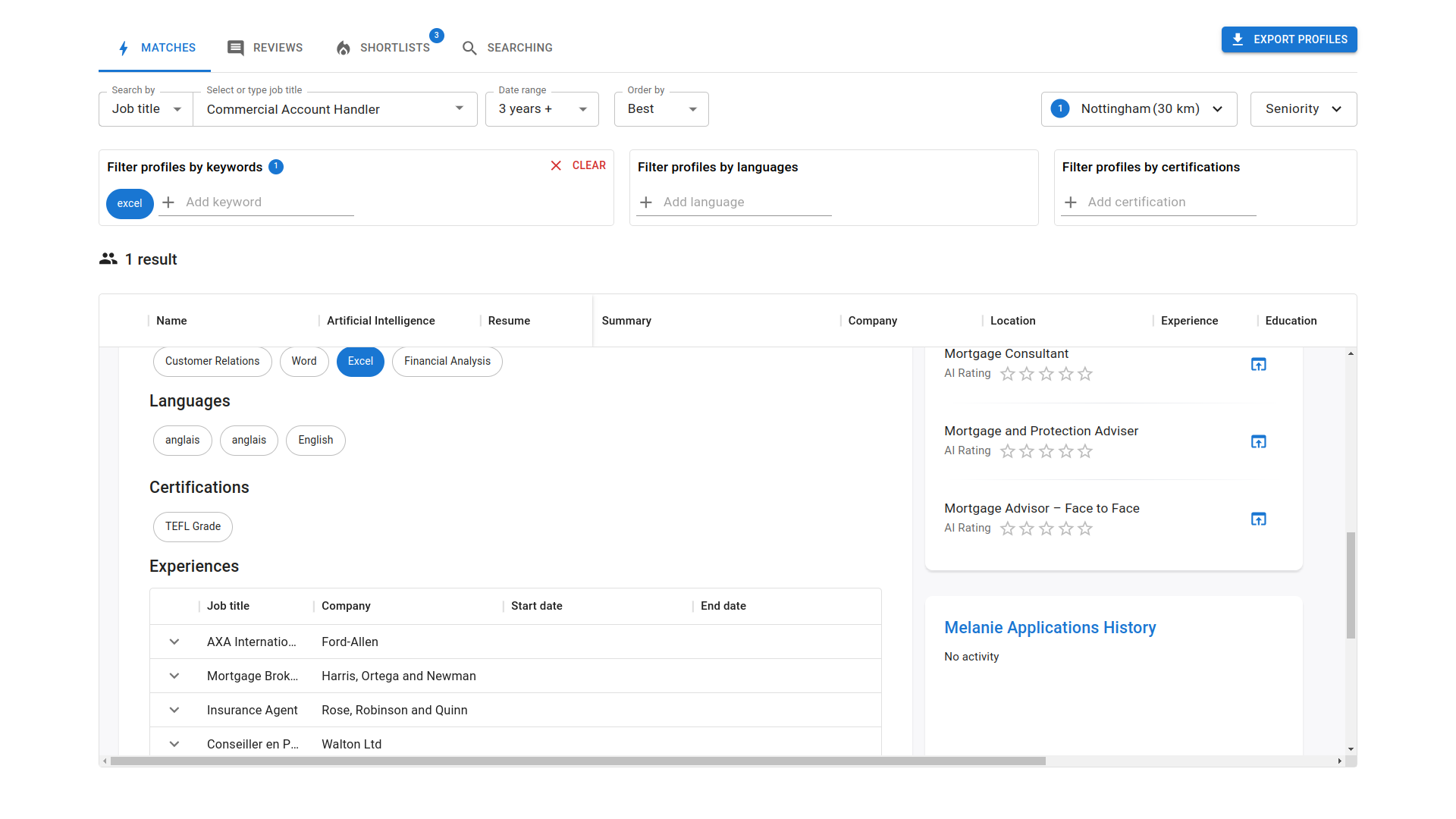 - New Profile Details: Provides a comprehensive overview of each profile, including work experience, education, skills, and other relevant information.