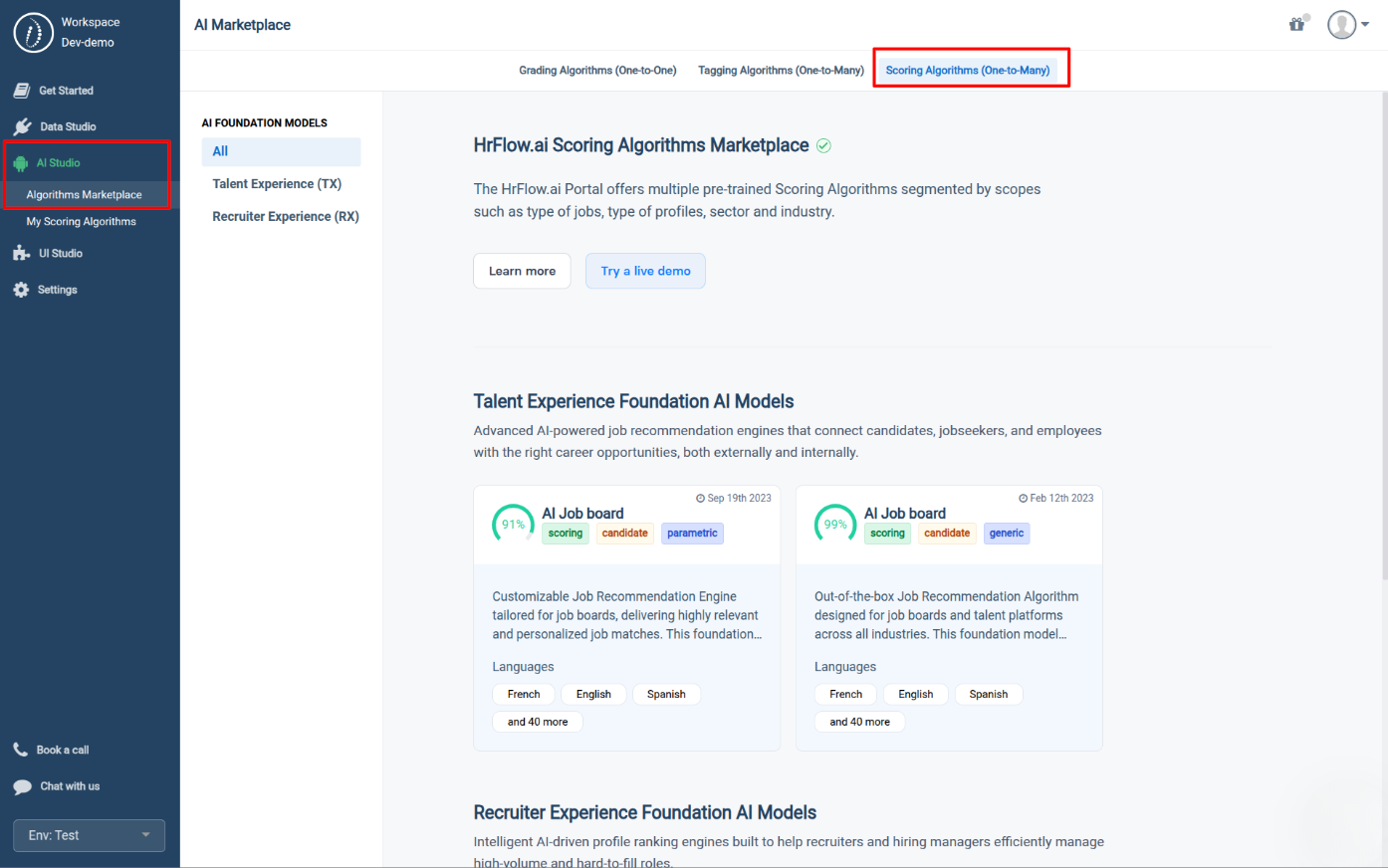 This new marketplace gives users access to a wide range of pre‑trained scoring algorithms, organized by job type, profile type, sector, and industry.