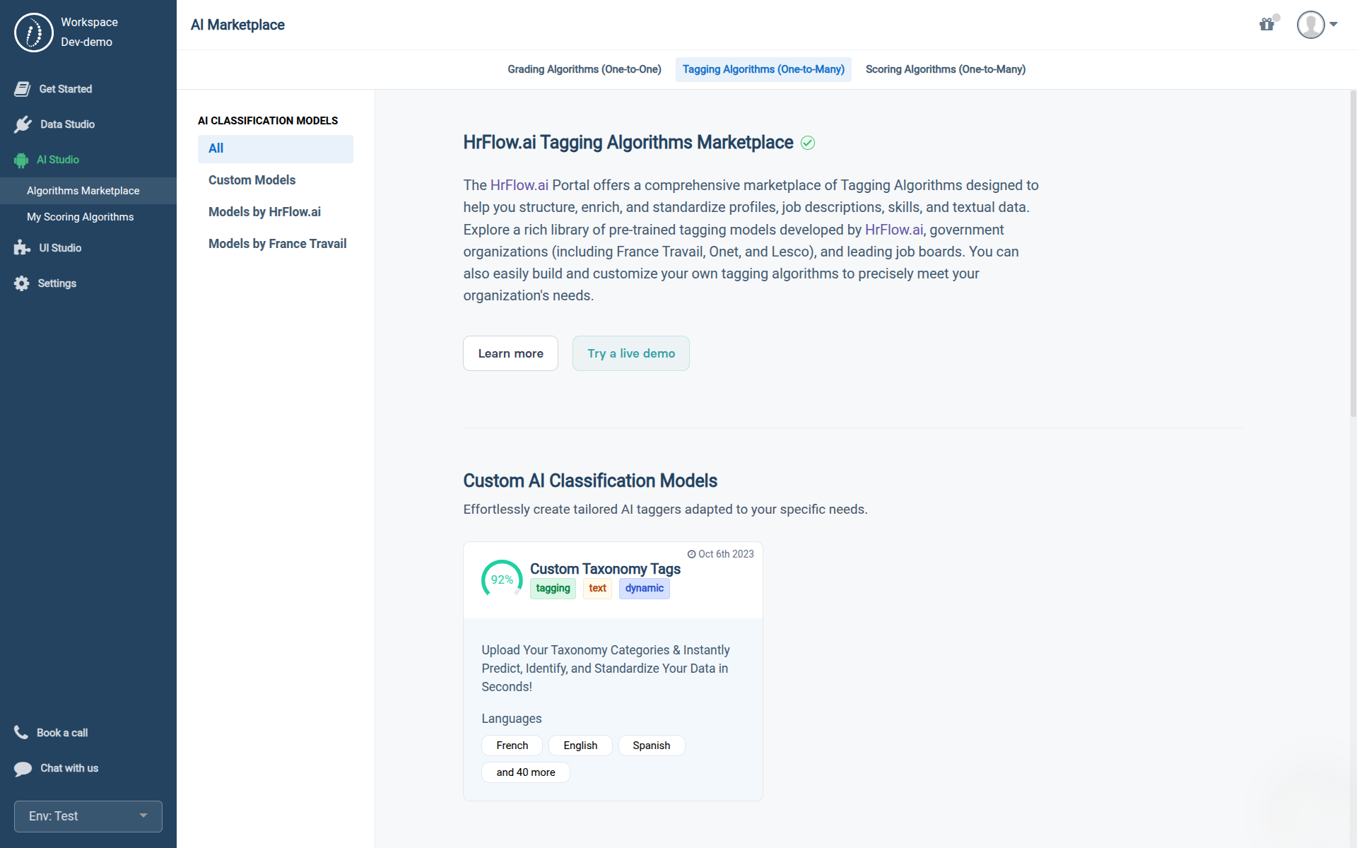 - Access a Complete Catalog of 9 Tagging AlgorithmsExplore all available tagging models — from generic classification to HR‑specific taxonomies.
