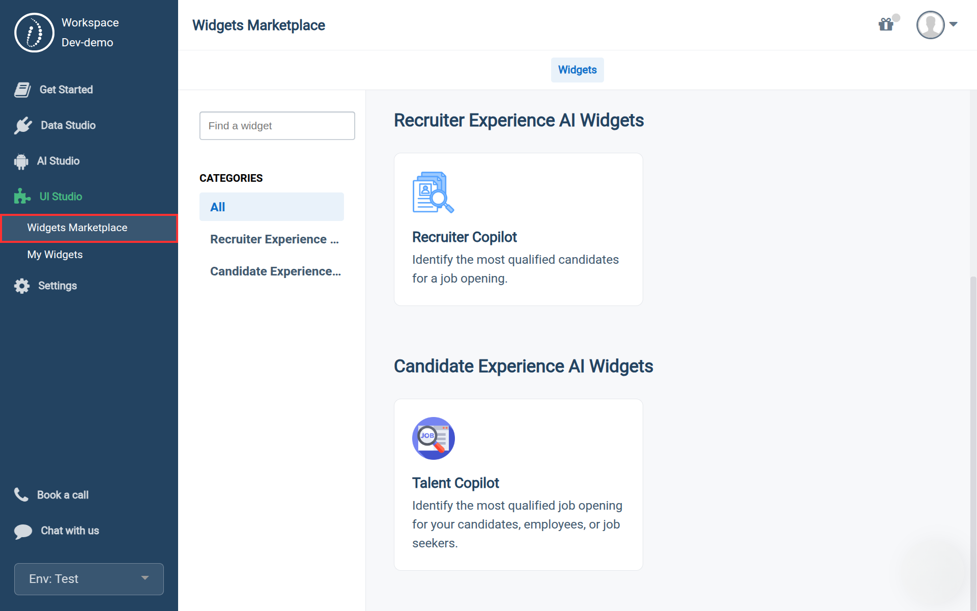 We’ve added two new features to the UI Studio, available in the HrFlow.ai Portal: the Widgets Marketplace and the Widgets list.
