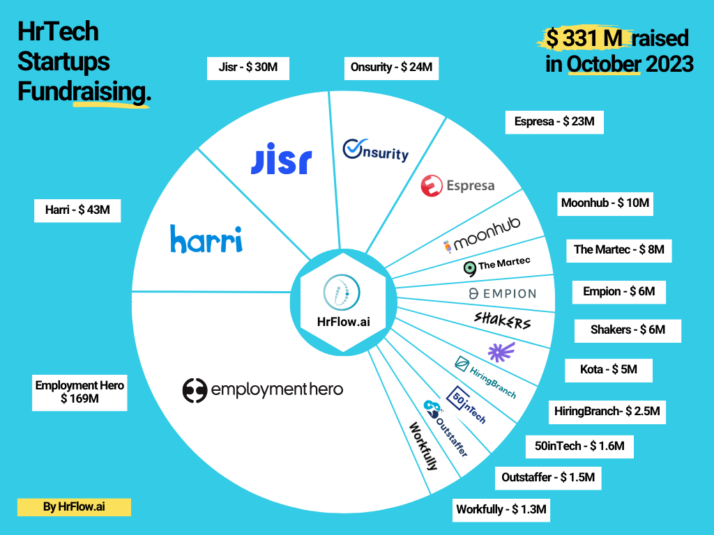 October marked a significant juncture as fourteen promising HrTech startups secured a remarkable $331 million in funding. This financial influx has opened up new horizons for these startups, allowing them to expand their operations and explore fresh development avenues.