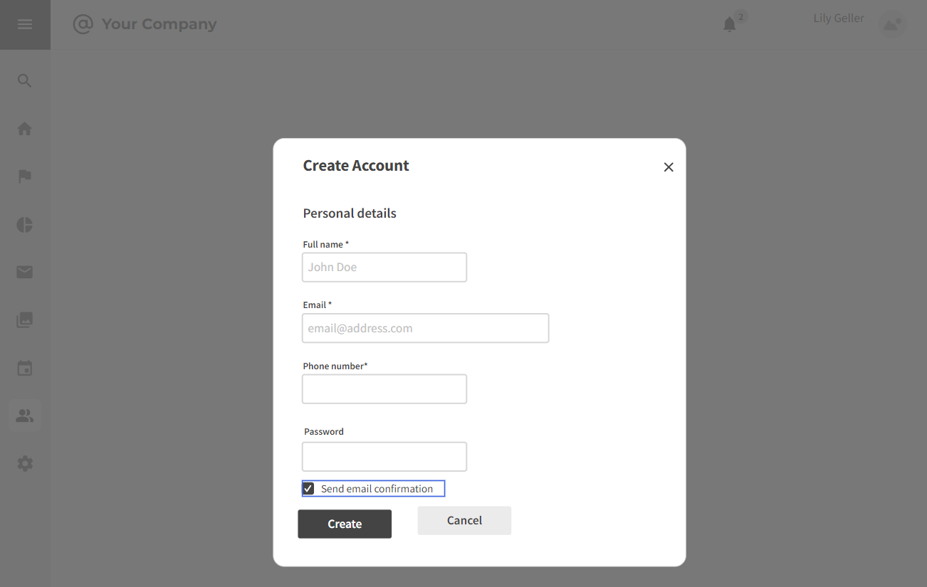 - Enables input of personal and company details efficiently.