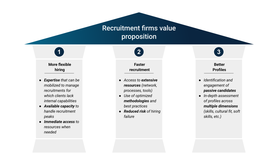 Today, the value proposition of recruitment firms relies on three main pillars: